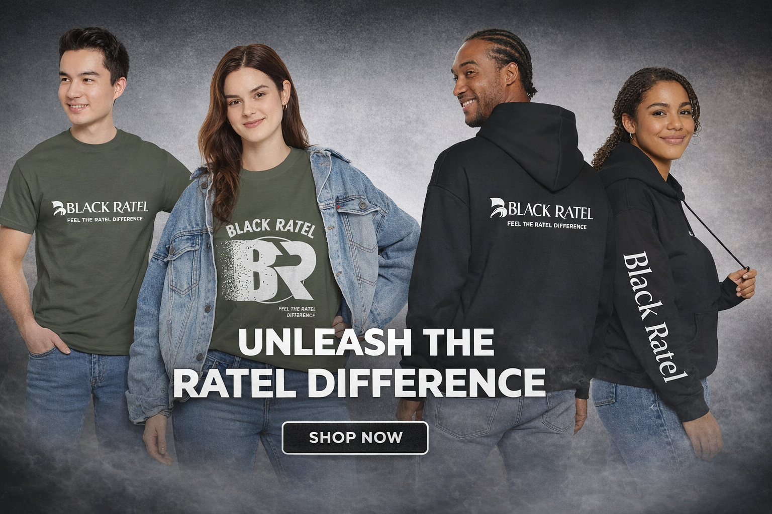 Black Ratel Logo Tee — "Feel the Ratel Difference" Graphic T‑Shirt