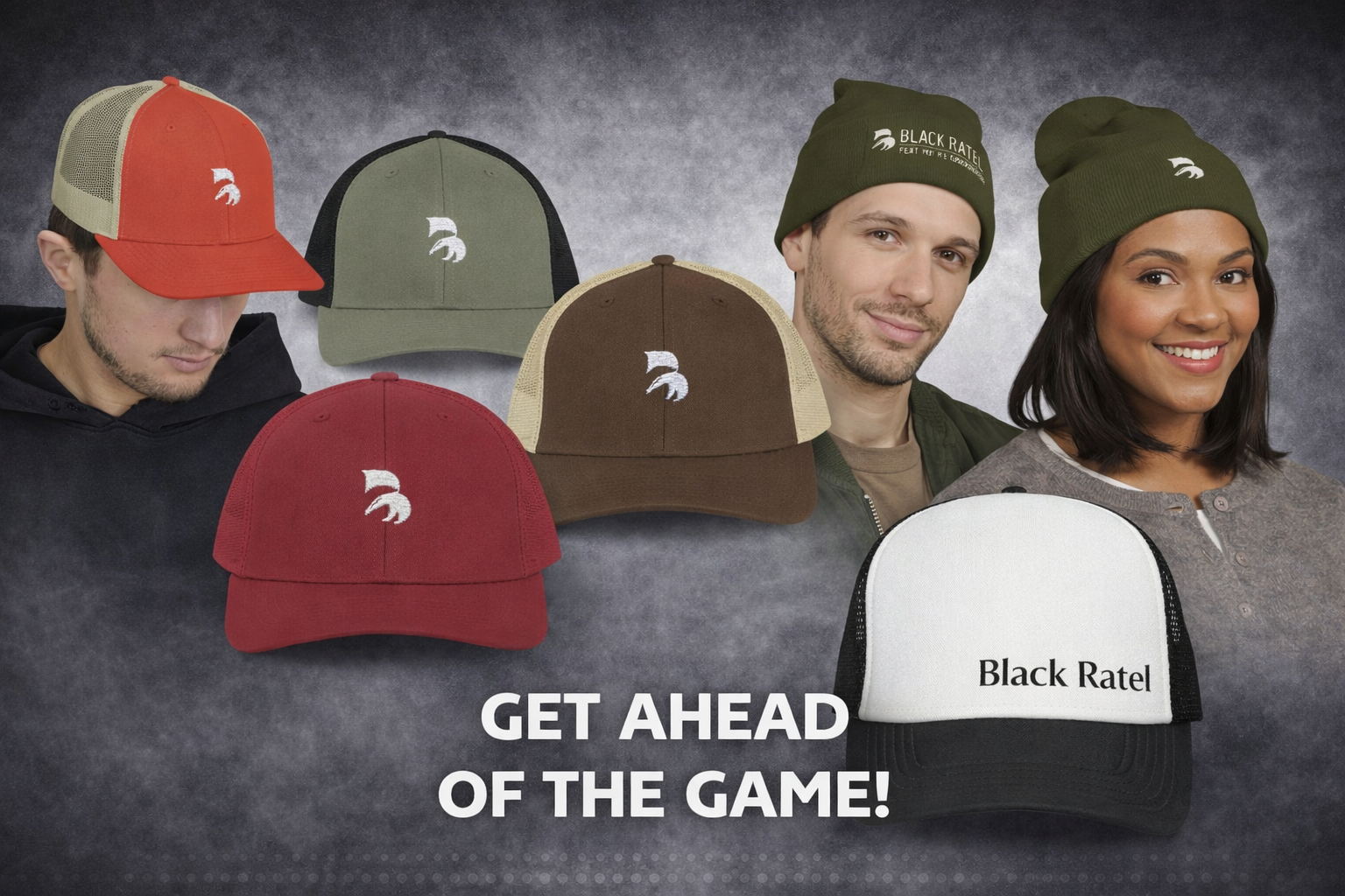 Black Ratel Trucker Cap – Minimal Text Mesh Hat