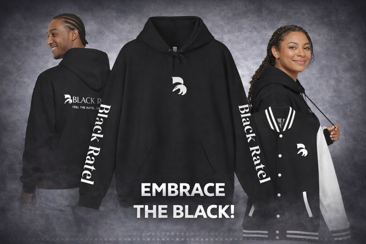 Black Ratel BR Distressed Logo Hoodie — Lightweight Unisex Hooded Sweatshirt