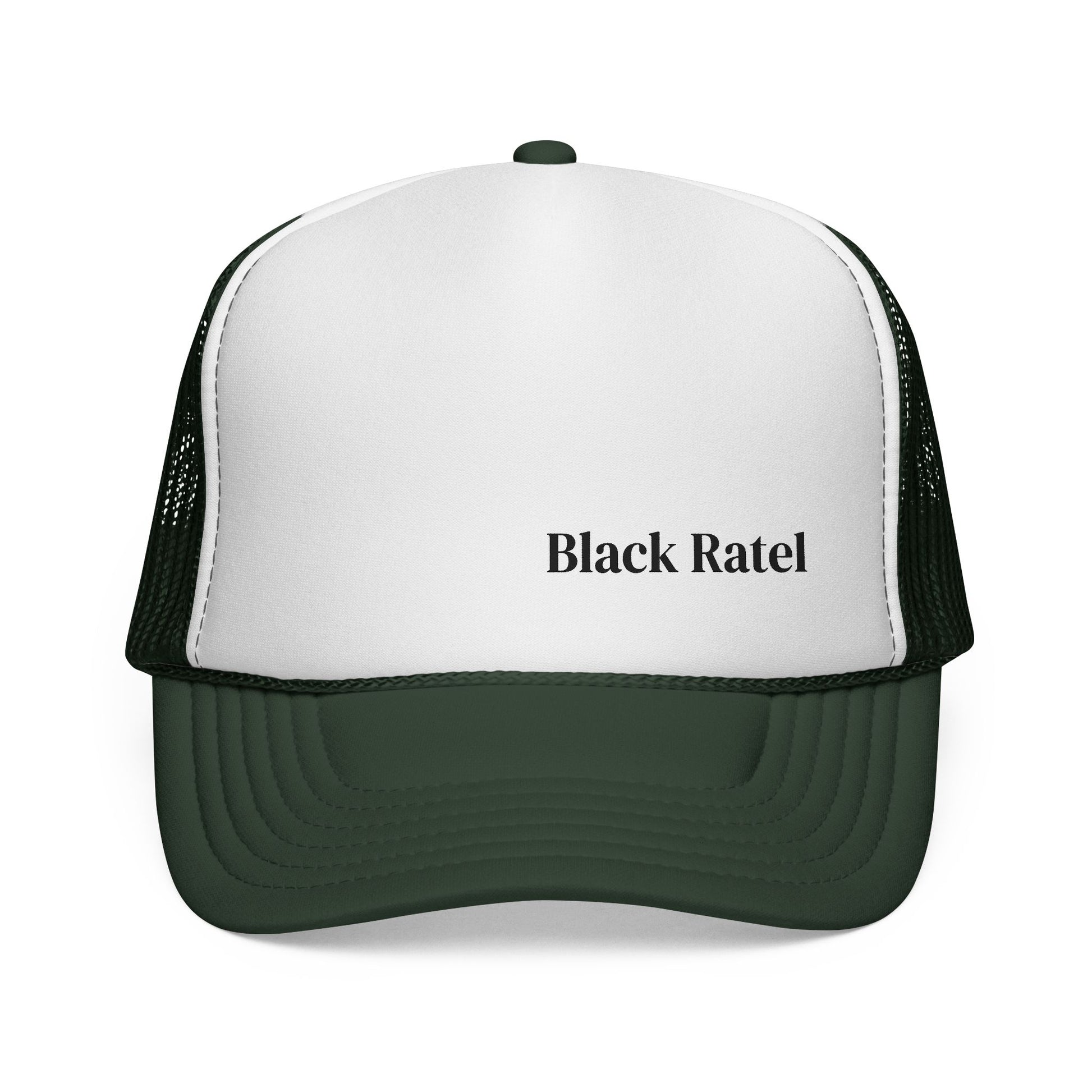 Black Ratel Trucker Cap – Minimal Text Mesh Hat